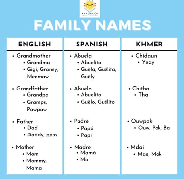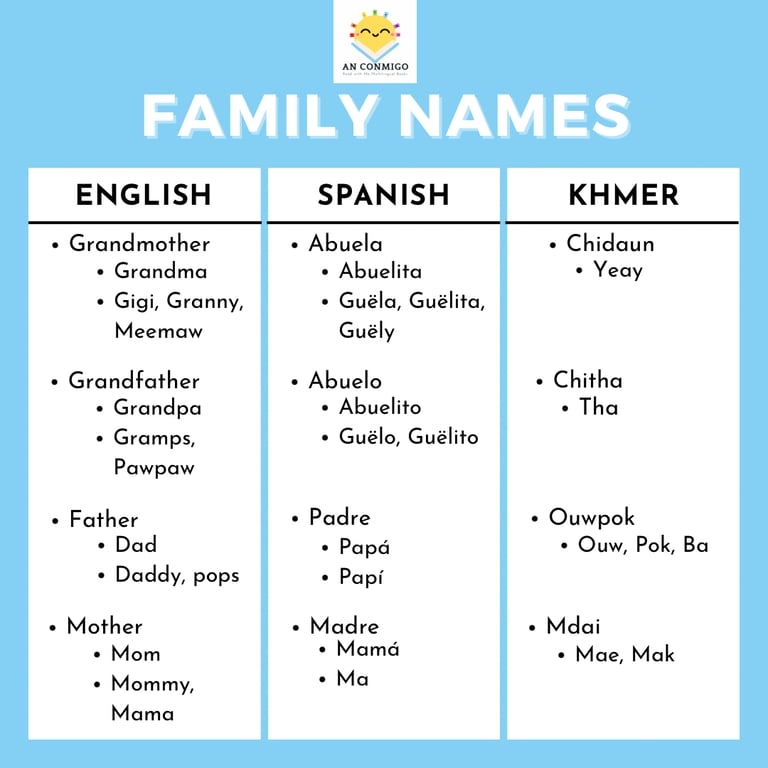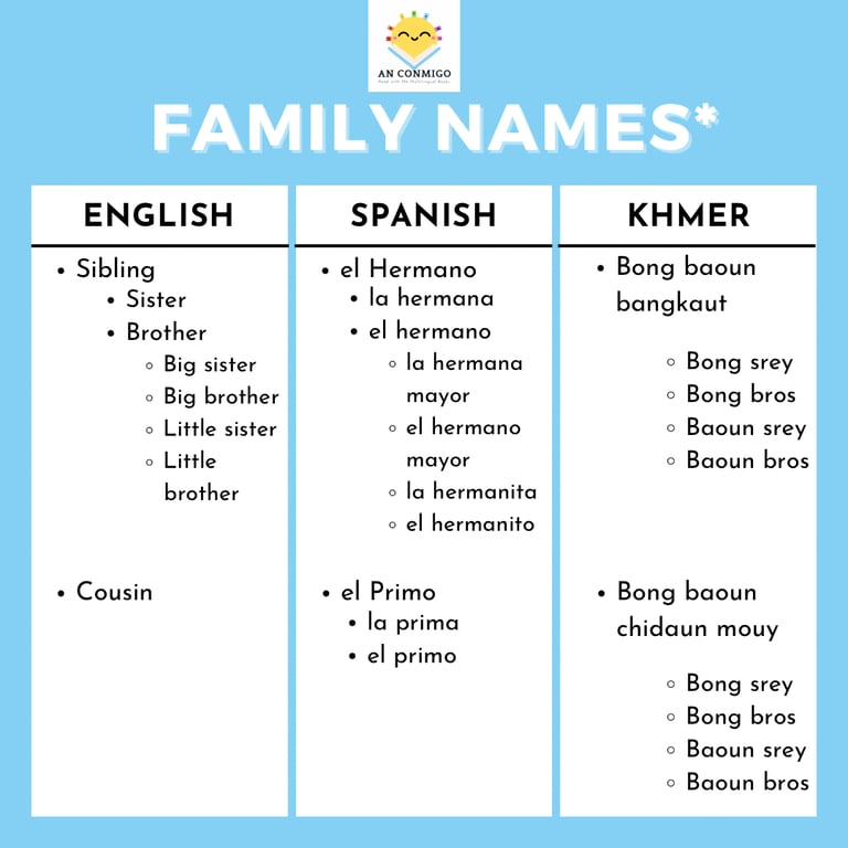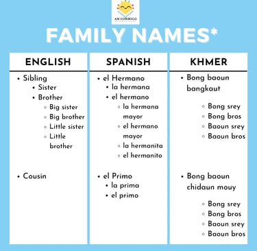 Learning the Names of Family Members in Spanish, Khmer, and English