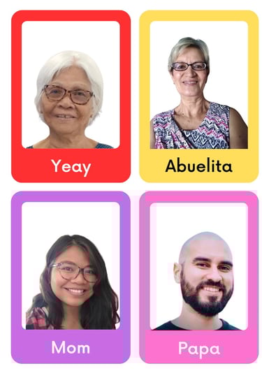 Practice using the names of family members in sentences. For example, ask your children to say, "My grandmother is called 'abuela' in Spanish."